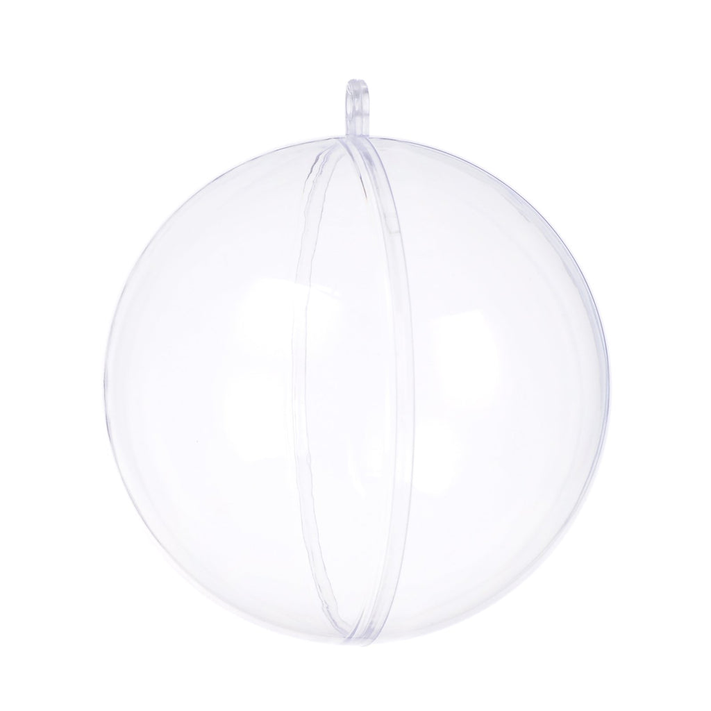 3.25 inch 80mm Clear Plastic Fillable Ornaments Balls for Crafts. 80mm Clear Ornaments 12 Ornaments per package. These clear ornament balls are made of a heavy gauge clear plastic. Each 80mm clear plastic ornament has two halves and they snap together to make one ornament. You will receive 24 half ornament balls which make 12 Ornaments. They come in two pieces, so they are fillable ornament balls for holiday decorations and much more. They are 80mm or 3.25 inches in diameter. This 2-part acrylic ball is perfect for Christmas tree ornaments and party favors! To decorate add paint, glue, glitter, paper, lace, decoupage and much more!